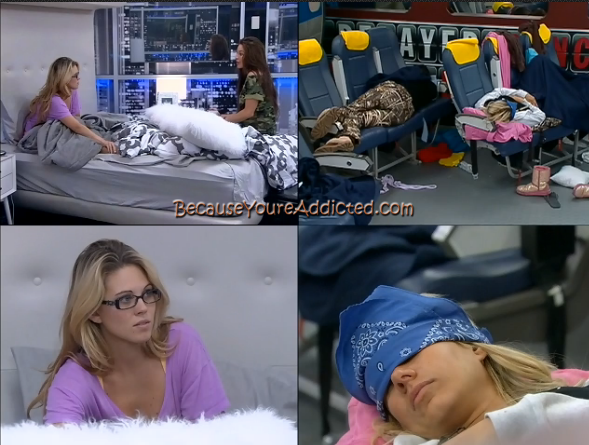 Amanda is still frustrated & talking to GM in the Have Nots room as they lay down. (**Elissa slept in the Have Nots Room, but Amanda's problem is that she laid down on a down comforter. I just re-listened to it.)