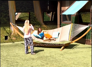 Elissa/Judd had a conversation on the backyard couch this morning at 11:05am BBT. Nothing game wise, really. Elissa did some Amanda & Aaryn bashing, talking about Amanda's botox "wearing off" and how "gross" she is, etc. They then talked about Aaryn campaigning to stay and Judd said he's voting her out no matter what.
